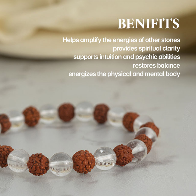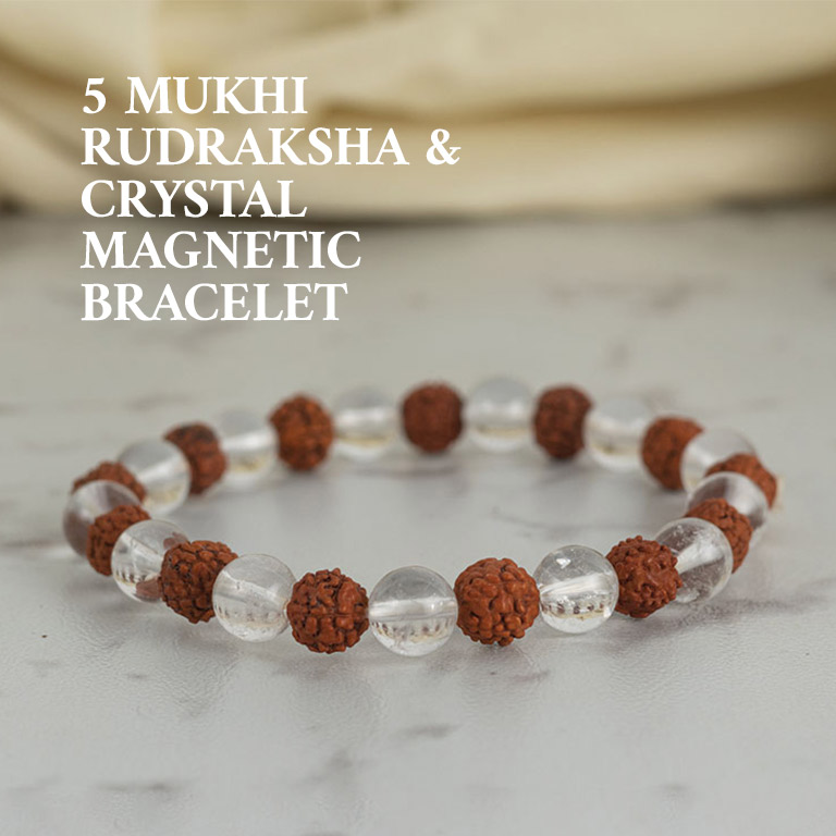 5 Mukhi Rudraksha Spatik Bracelet – Balance the Mind, Purify the Soul & Awaken Inner Harmony