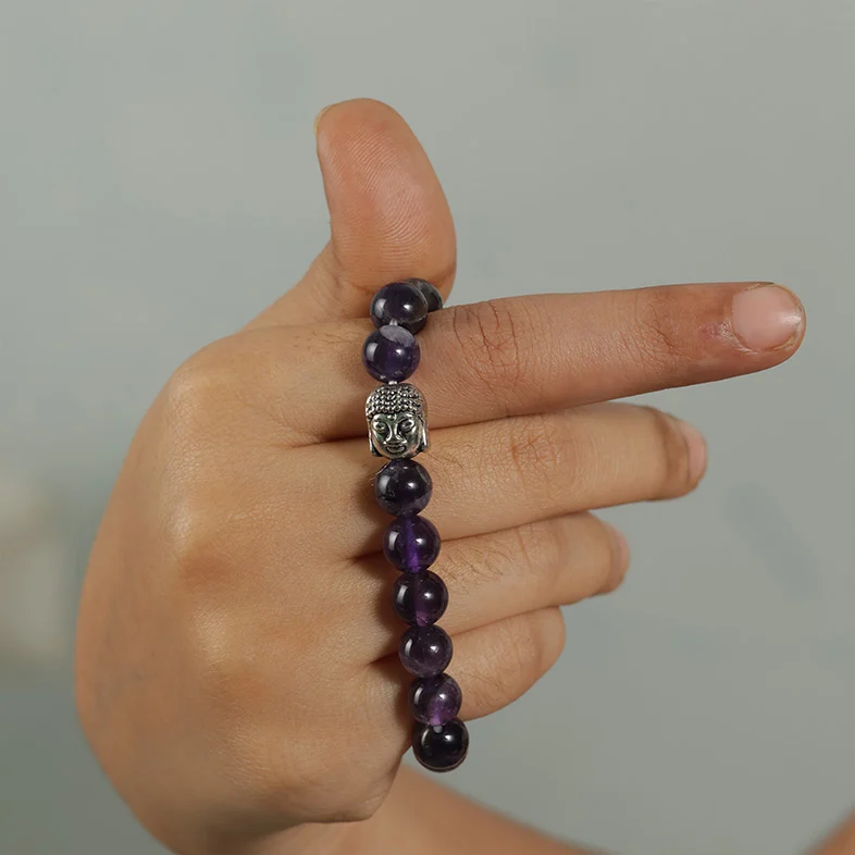 Wear the bracelet on your left wrist to absorb Amethyst’s calming and spiritually uplifting energy.