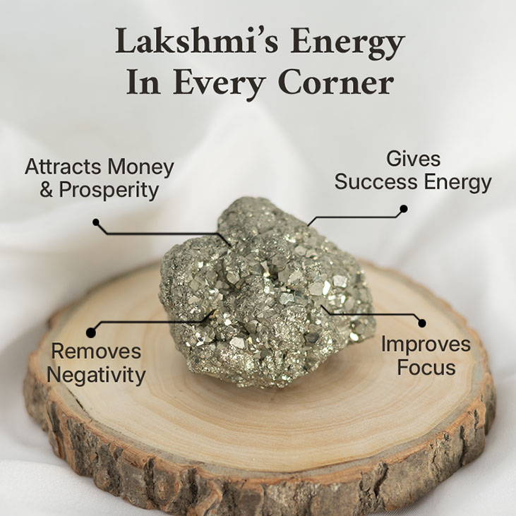 Placement: Place the Raw Pyrite Cluster in high-energy zones such as your work desk, pooja ghar, business premises, cash box, or in the Southeast (wealth corner) of your home as per Vastu.