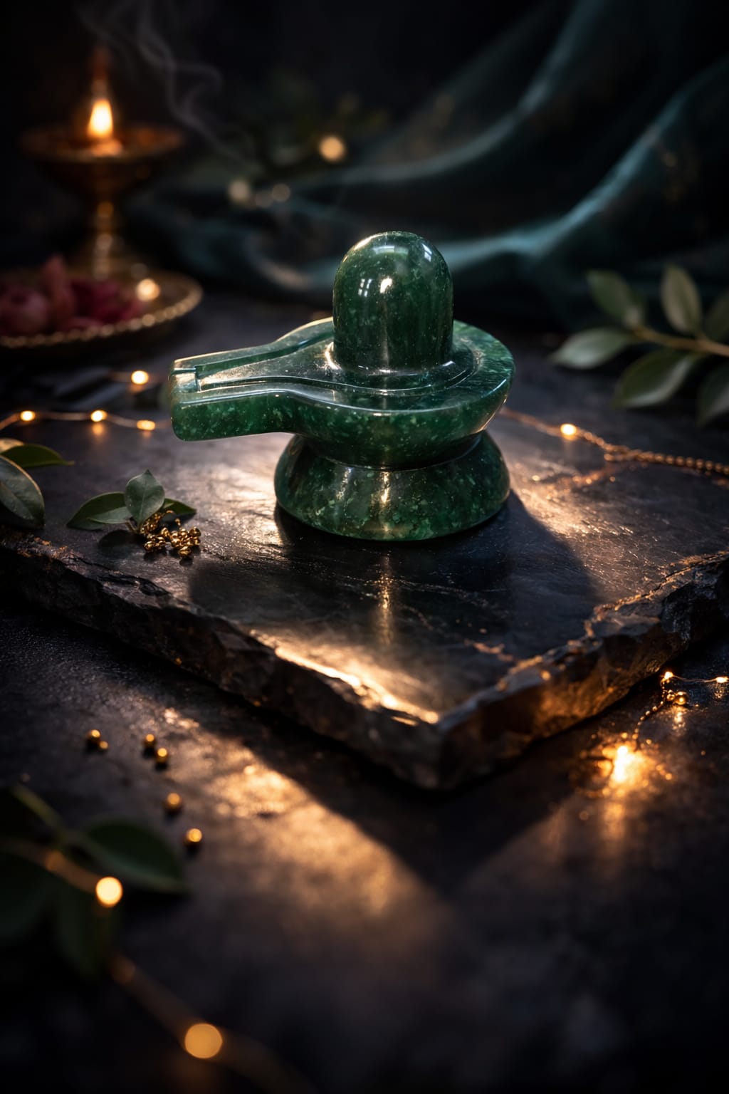 Placing the Jade Shivling in your home, office, or meditation space is said to help remove negative energies, balance surroundings, and create a calm, spiritually uplifting environment.