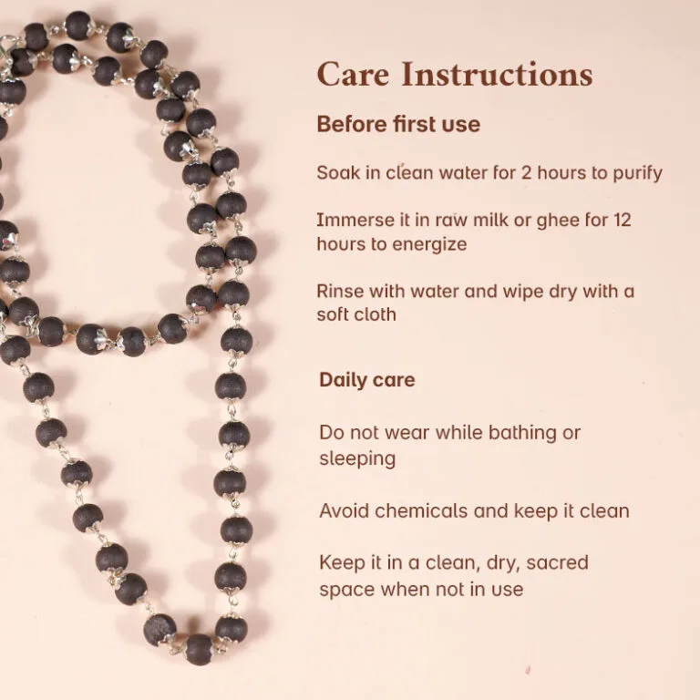 The touch of silver brings in added purity, mental clarity, and a naturally cooling vibration, enhancing the Mala’s energy flow and visual appeal.