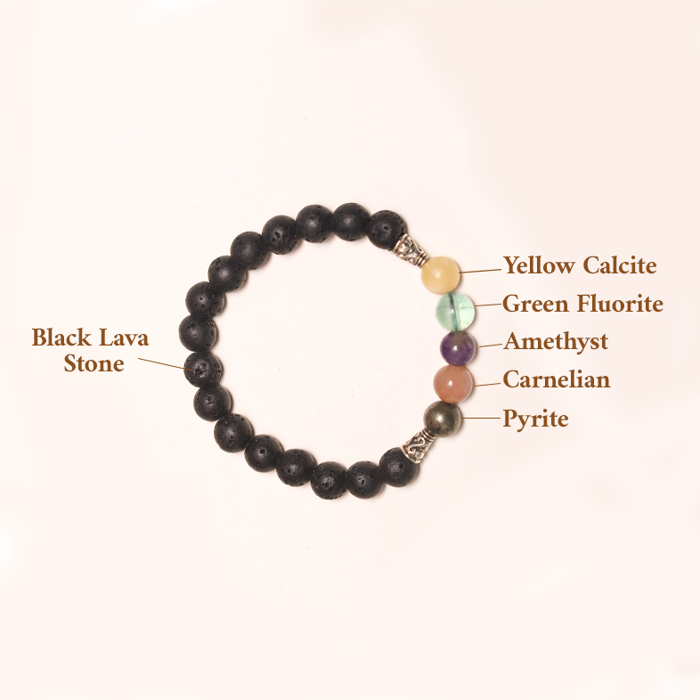 Black Lava Stone (Base Beads): Calms the mind, reduces stress, and keeps you grounded.